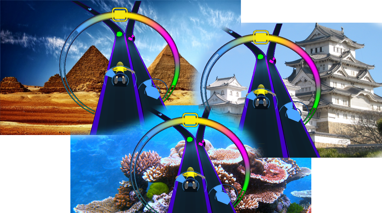 Explore diverse environments, from Autumn forests to tropical coral reefs to glowing psychedelic dreamscapes. *