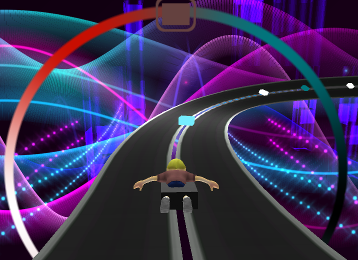 Leaving rhythm mode aside, the race mode needs more to compel people to want to play again. A fixed track (as opposed to a random, procedural one), with splits that allow players to take different paths should give players an extra layer of information to learn, and give them more choices in the game. Equally, having the track as a loop, with races over multiple laps, will allow players to correct mistakes (e.g. from taking the wrong path last lap,) within a single race, rather than having to wait for the next one.