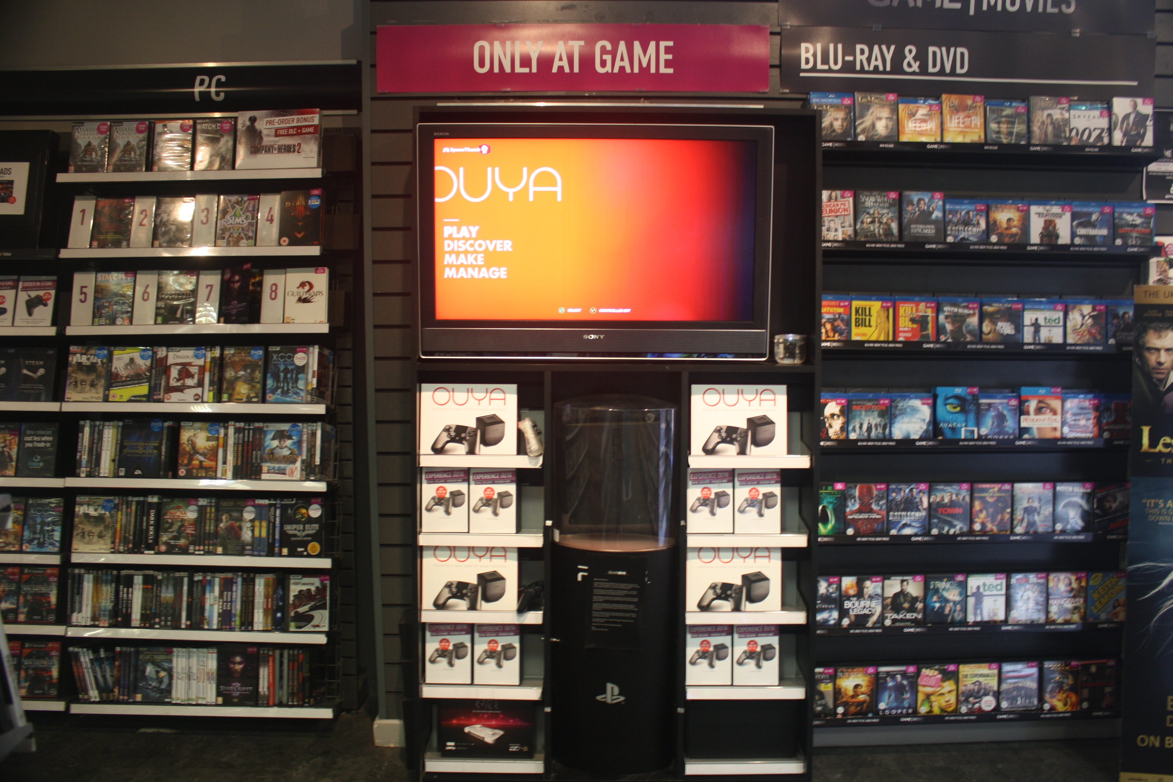The logical extension would be to demo the OUYA (and by proxy, my own game) in branches of GAME, and after approaching them about the idea, they proved receptive and willing to give it a go. So, last week I headed down to Northfield, a suburb of Birmingham, to the local branch of GAME to test drive the idea.